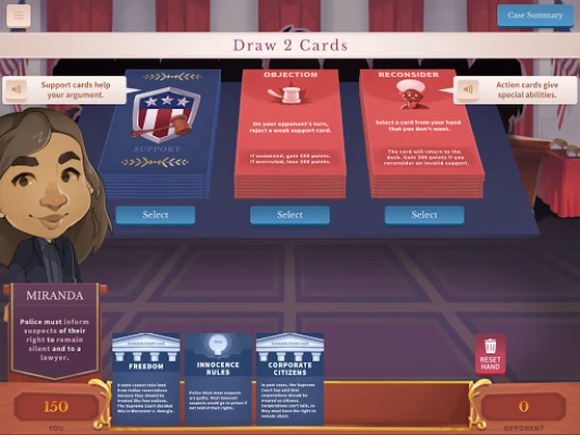 În Argument Wars, explorează-ți abilitățile de persuasiune argumentând un caz real al Curții Supreme. Concurează împotriva altui avocat, folosind cele mai solide argumente pentru a câștiga fiecare dispută. Descoperă puterea logicii și a elocvenței în aceste confruntări legale intense.