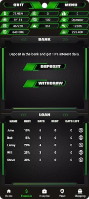 Lumea subterană este un câmp de luptă constant, unde inteligența se ciocnește cu forțele de ordine și sindicatele rivale. Pentru a vă proteja interesele și a vă asigura dominația, aveți la dispoziție un arsenal de 10 arme și 2 tipuri de armuri. Mențineți-vă capitalul în siguranță și fructificați-l inteligent, profitând de o rată de investiție bancară de 5-10%. Urcați cele 6 ranguri disponibile, demonstrându-vă măiestria în afacerile ilicite și consolidându-vă poziția în fața adversarilor. Doar cei mai abili și nemiloși strategi vor reuși să-și graveze numele pe clasamentul global, revendicând titlul de arhitect suprem al imperiului infracțional.