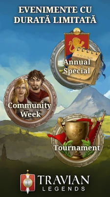 Pătrunde într-o lume dinamică, plină de evenimente exclusive și provocări competitive care îți vor testa abilitățile de lider. Participă la emblematicul Turneu Travian, unde doar cei mai puternici se impun, sau la Evenimentele Anuale Speciale, ce introduc mecanici de joc inovatoare. Săptămâna Comunității îți oferă ocazia de a te conecta și de a-ți demonstra strategiile, în timp ce te adaptezi la diversele tipuri și viteze ale lumilor de joc. Travian: Legends îți aduce o experiență autentică de strategie MMO direct pe mobil și desktop, permițându-ți să rămâi conectat cu aliații tăi și să coordonezi mișcările imperiului oricând, oriunde.