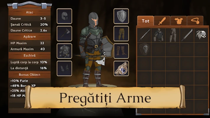 Aventura ta în Obsidian Knight RPG este o provocare roguelike, unde fiecare incursiune aduce o experiență unică și plină de adrenalină. Angajează-te în lupte strategice împotriva unei varietăți de inamici, de la bandiți vicleni la giganți impunători și armate de schelete nemuritoare. Stăpânește sistemul de luptă dinamic, combinând ingenios abilitățile pentru a crea sinergii devastatoare și pentru a-ți construi un stil de joc aproape invincibil. Descoperă un arsenal vast de obiecte legendare, personalizându-ți personajul pentru a-i maximiza puterea și a-l adapta oricărei amenințări. Progresează constant, devenind mai puternic cu fiecare victorie, într-un ciclu de recompensare captivant.