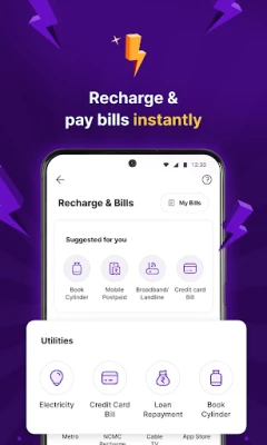 Descoperiți o nouă eră a gestionării financiare cu PhonePe, platforma robustă și sigură care revoluționează modul în care interacționați cu banii dumneavoastră. Conectarea rapidă a contului bancar vă permite să efectuați transferuri instantanee prin BHIM UPI, simplificând fiecare tranzacție. PhonePe transcende experiența bancară convențională, oferind o suită complexă de servicii care acoperă plăți zilnice, investiții strategice, gestionarea fondurilor mutuale, asigurări esențiale și toate nevoile dumneavoastră bancare, direct de pe dispozitivul mobil. Este soluția all-in-one concepută pentru eficiență și liniște financiară.
