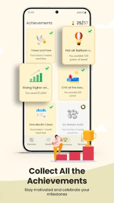 Cu Quit Weed, fiecare progres este vizibil și cuantificabil. Secțiunea *Statisticile Tale* îți prezintă cu claritate timpul de abstinență, până la secundă, precum și economiile financiare acumulate. Poți monitoriza cu precizie cantitatea de substanță evitată și chiar nivelul de THC pe care l-ai ținut departe de organism, prin introducerea potenței. În plus, contorizează fiecare ocazie la care ai renunțat, având opțiunea de a selecta metode multiple pentru o înregistrare exactă. Pentru a te menține motivat pe termen lung, *Realizările* te recompensează pentru peste 50 de etape importante, de la prima zi la primul an de abstinență. Nu în ultimul rând, *Statistici de Sănătate* îți arată impactul pozitiv asupra corpului și minții, alături de o cronologie a simptomelor comune de sevraj, pentru a ști la ce să te aștepți și pentru a naviga procesul cu încredere.